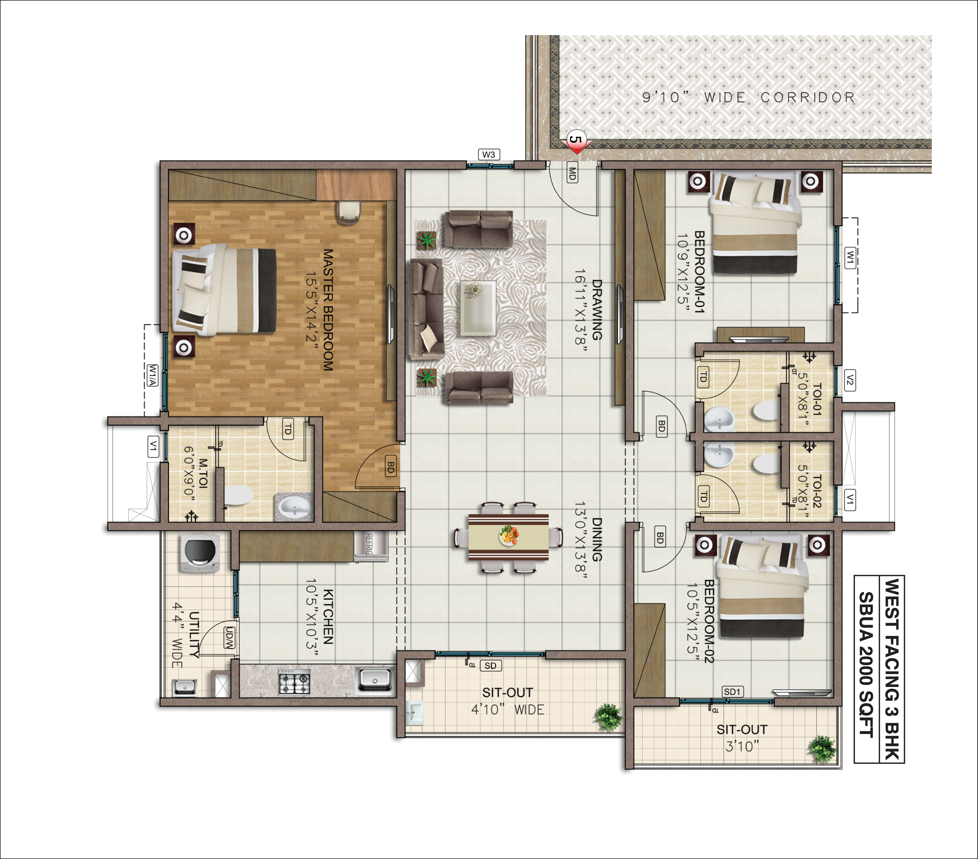 An individualistic residential space which offers a lifestyle embellished with a beauty of its own. A distinct royal character dwells well into luxury, blending seamlessly and towering above the horizon of Hyderabad. Located at Kondapur, Hyderabad, Sumadhura Horizon comes with top-of-the-line specifications that include global brands and excellent amenities that align with home buyers who are looking for a lifestyle that is cut above the rest.